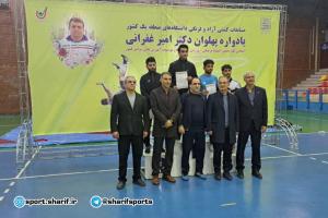 تیم شایسته کشتی پسران دانشگاه صنعتی شریف توانست با کسب 13 مدال رنگارنگ در این دوره از رقابت ها خوش بدرخشد. گفتنی است فرنگی کاران دانشگاه با کسب 10 مدال، تنها با اختلاف 5 امتیاز نسبت به تیم دانشگاه تهران و هم امتیاز با تیم دانشگاه شهید بهشتی (بدلیل یک مدال طلا کمتر) رتبه سوم را به خود اختصاص دادند. در کشتی آزاد نیز ورزشکاران دانشگاه با کسب 1 مدال طلا و 2 برنز به کار خود پایان دادند. به این ترتیب 6 سهمیه در مسابقات شانزدهمین المپیاد ورزشی دانشجویان در سال آینده برای تیم کشتی دانشگاه صنعتی شریف قطعی شده است. شایان ذکر است که ارشاد شفیعی، آزادکار دانشگاه صنعتی شریف، در پایان رقابت ها بعنوان ستاره مسابقات معرفی گردید.